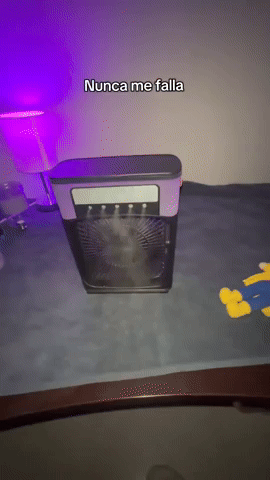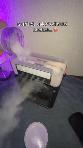 Mientras otros ventiladores solo lanzan aire caliente, este libera una niebla fina que baja la sensación térmica y transforma tu ambiente en segundos.